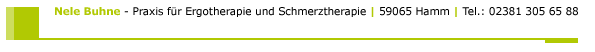 Nele Buhne, geboren und aufgewachsen in Hamm, ist seit 1998 als staatlich anerkannte Ergotherapeutin tätig. Seit 2007 bietet sie auch ergotherapeutische Schmerzbehandlung an.